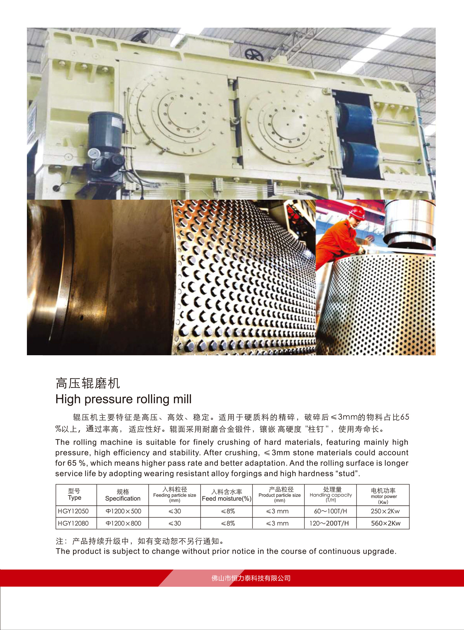 The rolling machine is suitable for finely crushing of hard materials, featuring mainly high pressure, high efficiency and stability. After crushing, <3mm stone materials could account for 65 %, which means higher pass rate and better adaptation. And the rolling surface is longer service life by adopting wearing resistant alloy forgings and high hardness “stud”.