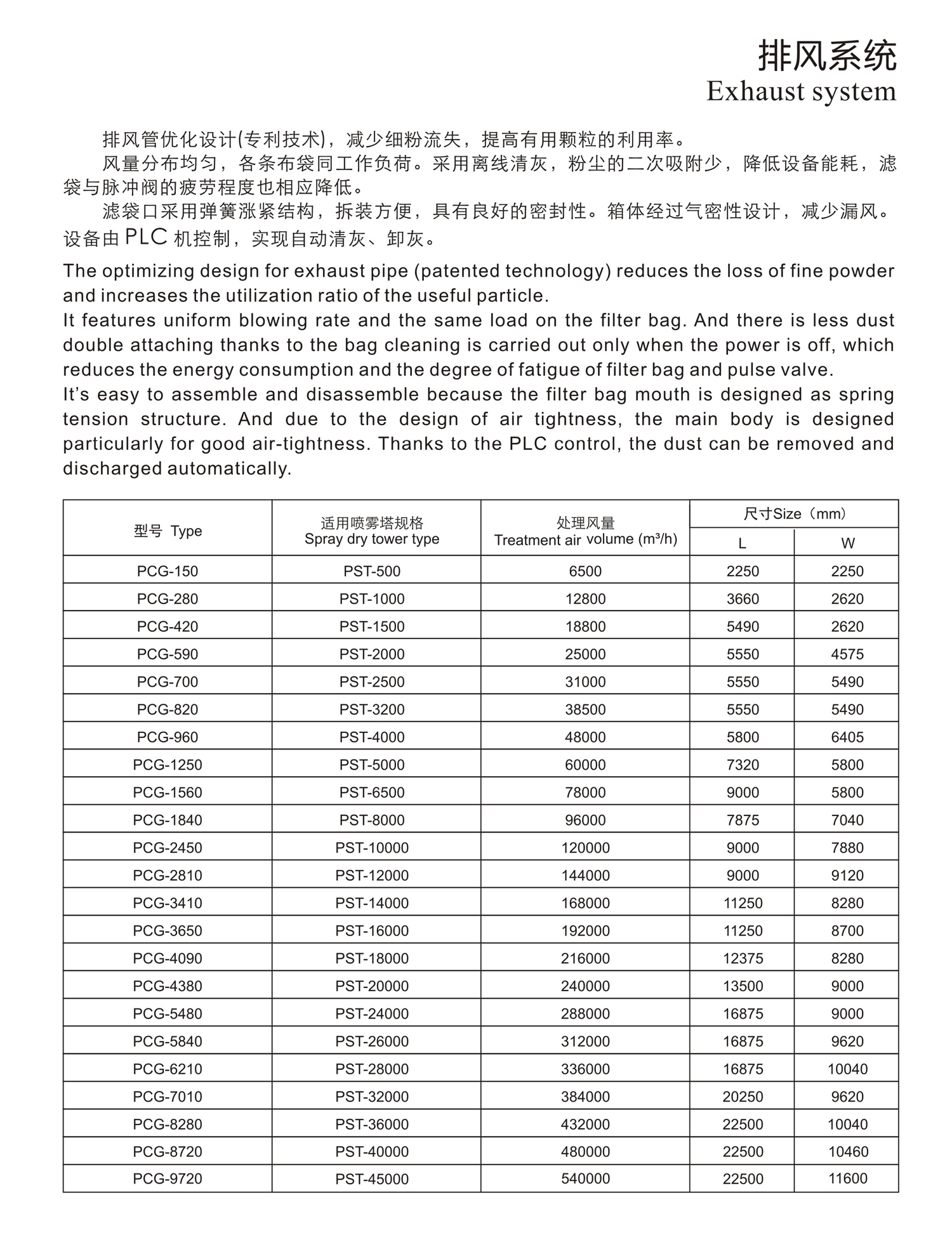 The optimizing design for exhaust pipe (patented technology) reduces the loss of fine powder and increases the utilization ratio of the useful particle. It features uniform blowing rate and the same load on the filter bag. And there is less dust double attaching thanks to the bag cleaning is carried out only when the power is off. Which reduces the energy consumption and the degree of fatigue of filter bag and pulse valve.