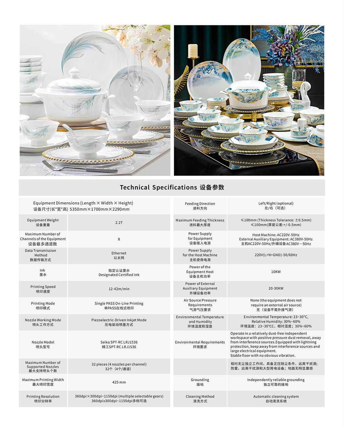 It can directly jet-print various patterns on the surface of tableware, effectively replacing manual decal application and model pad printing, and achieving intelligent digital printing.