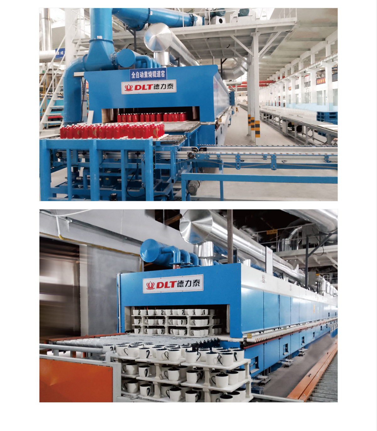 辊道窑分为素烧窑和釉烧窑,具备DHR余热回收再加热系统、KHI窑体综合隔热技术、PPC空燃比精益化控制技术、SPR助燃风加热系统、OCE优化燃烧节能系统、EMS能源管理系统、AGM空窑管理系统、KPS窑墙保护系统、TMA窑具纠偏系统、DMA传动控制系统、M-APP云控系统以及MCG手机信使服务系统等。