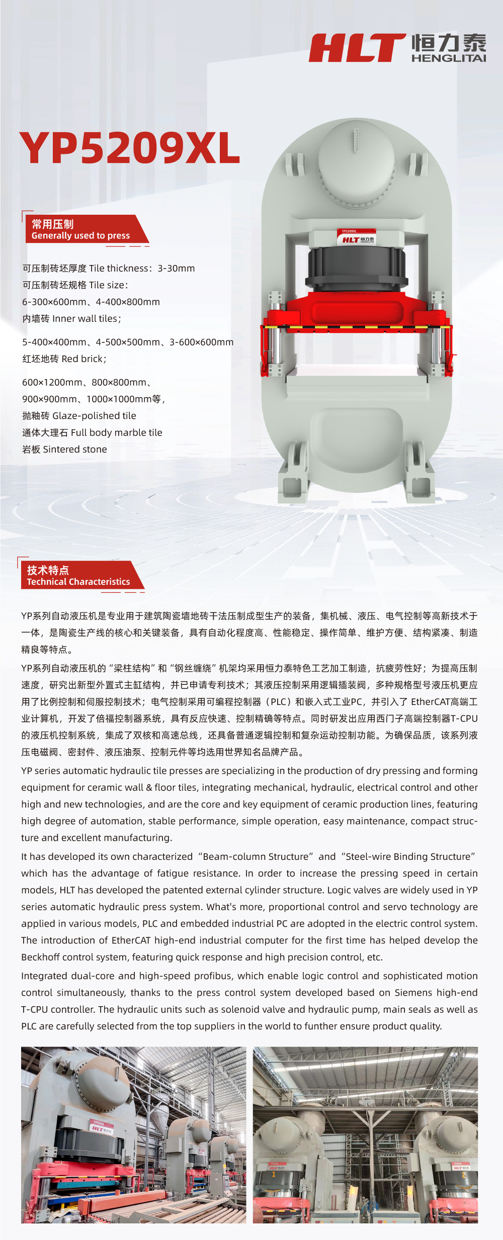 可压制砖坯厚度:3-30mm;可压制砖坯规格:6-300x600mm、4-400x800mm内墙砖,5-400x400mm、4-500x500mm、3-600x600mm红坯地砖,600x1200mm、800x800mm,900x900mm、1000x1000mm等抛釉砖、通体大理石、岩板