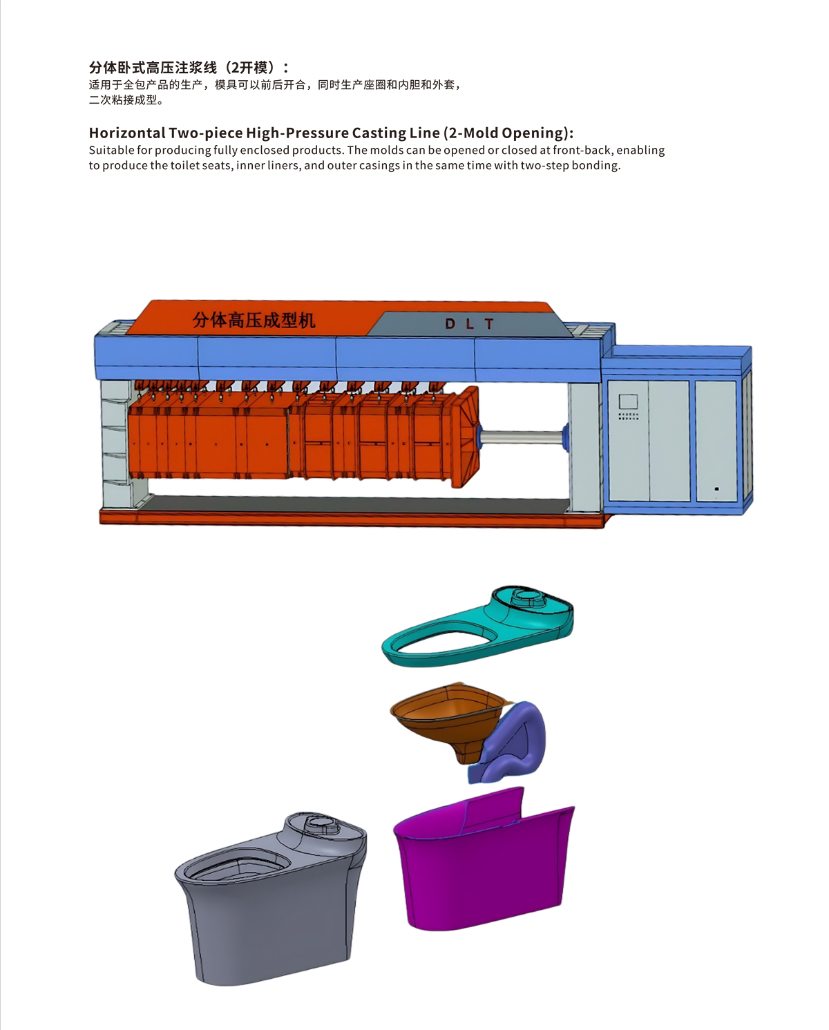 根据产品结构不同,可用盆类、蹲便器、分体座便器、挂便器的生产。